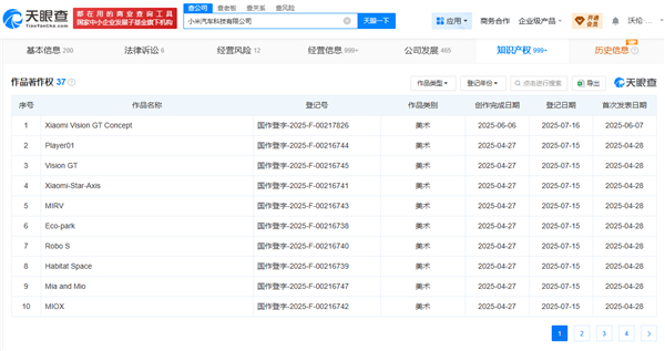 快科技7月21日消息,日前,小米汽车科技有限公司登记Xiaomi Vision GT Concept、Vision GT、Xiaomi-Star-Axis等作品著作权,作品类别均为美术。