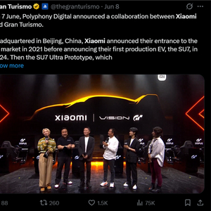 今年6月,小米与《GT赛车》游戏开发商Polyphony Digital达成合作,小米SU7 Ultra将登陆《GT赛车7》,并同步推出概念车Xiaomi Vision GT。