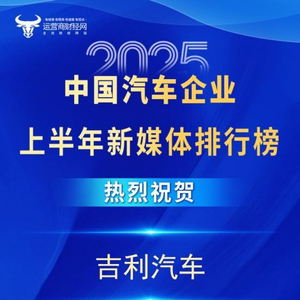 吉利汽车全矩阵抖音粉丝数748.1万在车企中排第六 不如比亚迪高