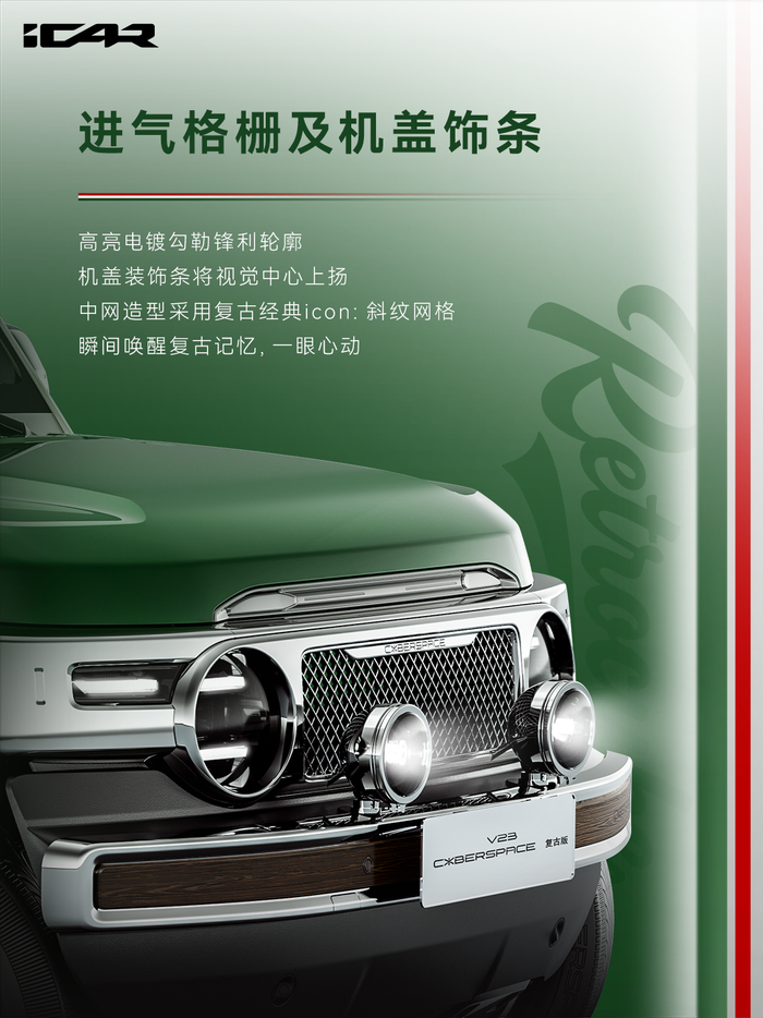 奇瑞 iCAR V23 推出复古套件:“满血版”2.88 万元含轮毂、射灯等 18 件装备