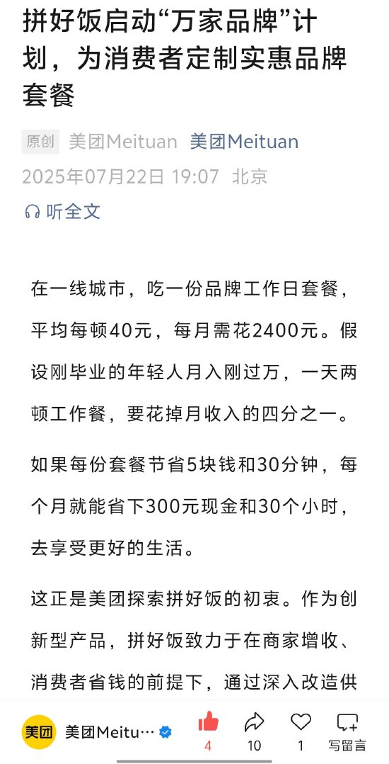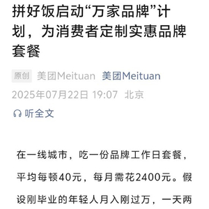 美团:拼好饭正式启动“万家品牌”计划,为全国1万家知名餐饮品牌提供扶持