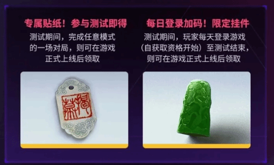 据悉,本次测试开放的时间为8月8日至8月14日,服务器会在工作日18:00-24:00,周末12:00-24:00开启。参与测试还将获得专属贴纸与限定挂件!