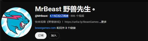 野兽先生在YouTube拥有4.15亿粉丝,全平台账号粉丝约8亿,比今年3月来中国的美国网红“甲亢哥”IShowSpeed还火。
