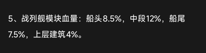 普通战列舰模块的血量由四部分组成,总计为8.5+12+7.5+4=32%。