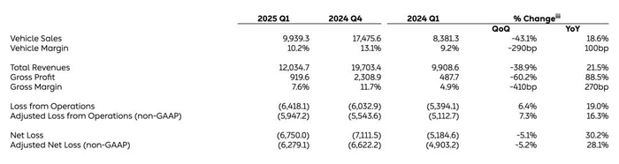 蔚来2025年第一季度财报中披露净亏损同比扩大超31%/图源:NIO官网