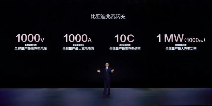 而后者在技术突破上更为迅猛,同样是在今年上半年,比亚迪宣布推出的“兆瓦闪充”技术,配合1000kW的超快充电桩,实现让车辆充电五分钟,就能续航400公里。