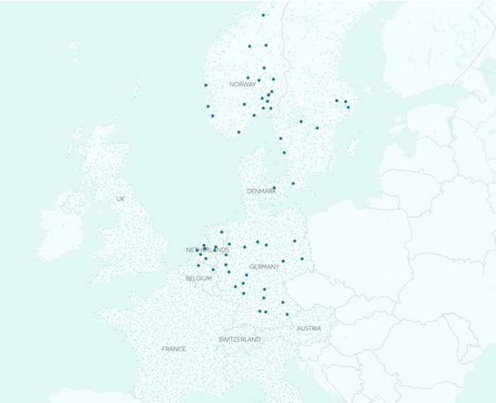 ▲蔚来在欧洲的补能体系,60 座换电站、26 座充电站