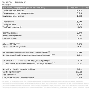 特斯拉第二季度营收 224.96 亿美元,净利润同比下降 16%
