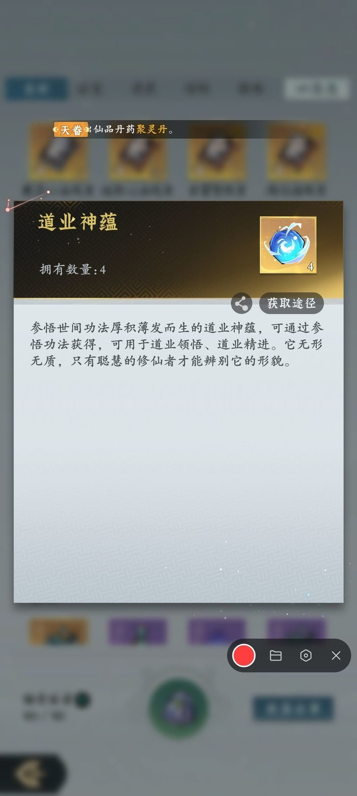 内场推荐:闭关石、闭关露、道业神韵(必备)、丹药和灵压石。