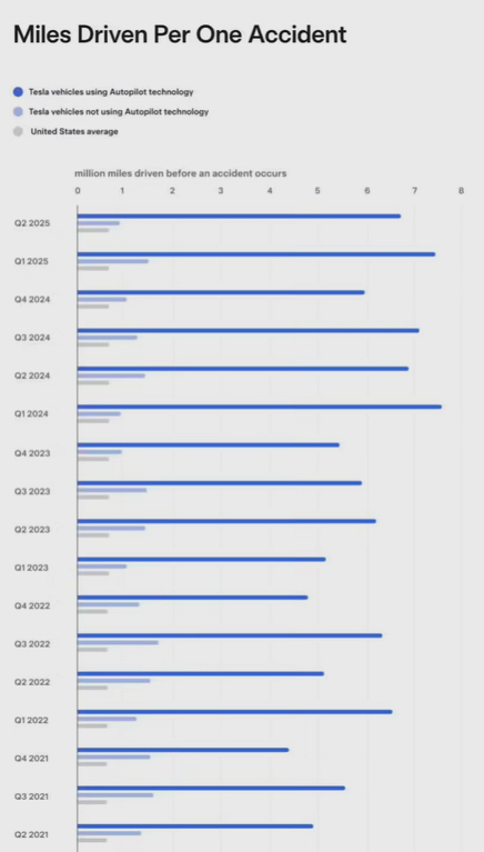 特斯拉表示,随着技术的不断进步和数据的持续积累,Autopilot 的安全性将进一步提升。