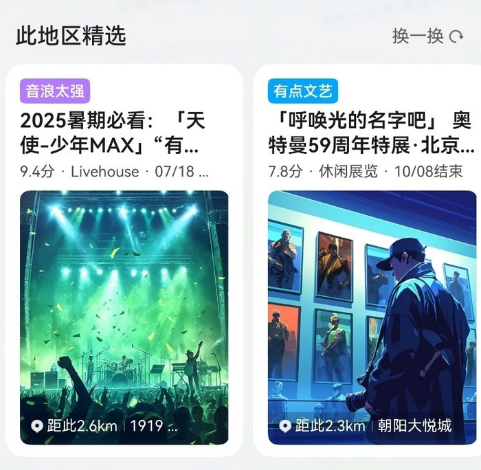 此外,鸿蒙版腾讯地图还对页面设计进行了优化,极简风的清爽布局让核心功能一目了然。而“此地区精选”板块则如同随身的“出行灵感库”,实时更新周边展览、市集、演出等活动,点击“路线”即可一键导航,让“临时起意”的出行想法在3秒内转化为行动。