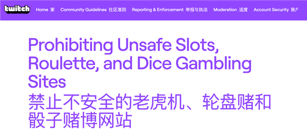2022 年 10 月 19 日,当时处于全球直播平台龙头地位的 Twitch,发布了一条公告,标题是:禁止不安全的老虎机、轮盘赌和骰子赌博网站。