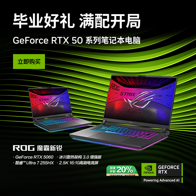 暑期电竞装备升级正当时,高性能游戏本ROG魔霸新锐2025搭载甜品升级的NVIDIA® GeForce RTX™ 5060笔记本电脑GPU,Blackwell 架构和 DLSS 4,为所有玩家带来升级体验,集成本地 SLM 的应用,加速运行。目前ROG魔霸新锐2025在部分地区叠加国家补贴政策后,到手价仅需8499元,堪称“真香”之选,是追求高性能与性价比玩家的暑期电竞装备优选。