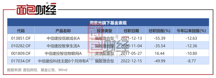 拉长时间线来看,周紫光目前在管的4只产品中,3只产品任职总回报均告负。旗下多只在管产品净值下跌、大幅跑输业绩基准,中信建投基金是否重视持有人利益?