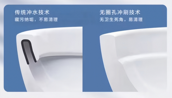 ③出水口藏污纳垢:传统马桶内壁一圈的出水口难以用普通刷子清洁,用户往往需要借助旧牙刷,甚至将刷头加热弯曲才能勉强清理,过程不仅繁琐而且很难清洁到位。