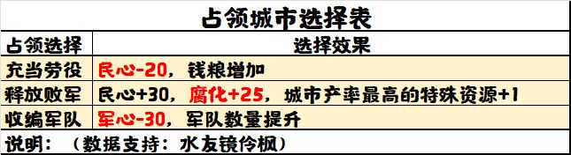 占领城市后,三个选项将带来不同收益。