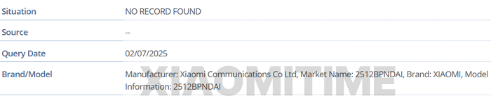 值得一提的是,前不久小米 16 Ultra 系列在 GSMA 数据库中现身。据外媒 xiaomitime 7 月 2 日报道,消息源发现了 2512BPNDAC、2512BPNDAI 和 2512BPNDG 三款型号,分别对应中国版、印度版和国际版,该媒体预估为小米 16 Ultra 机型。IT之家附上相关图片如下: