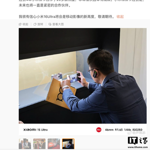 卢伟冰自信写道:“我很有信心小米 16Ultra 将会是移动影像的新高度,敬请期待。”