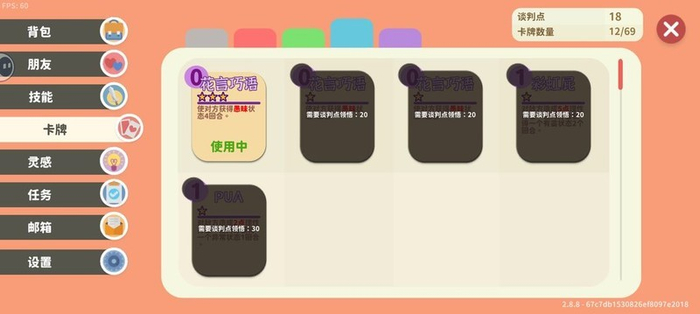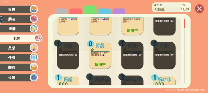攻略中推荐的卡牌价格太高,即便拥有也难以积攒足够的谈判点来解锁。像天人合一需要100点,其他如胸有成竹语出惊人直击心灵也都高达80点,实在难以凑齐。因此我选择了一套只需20点领悟值的组合,通过6点和12点逐步升级,实战效果也不错,有兴趣的朋友可以尝试一下。