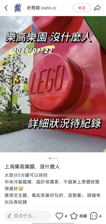 “体验后完全不推荐,建议乐高放弃所有非积木相关的一切业务,包括完全不懂行的乐园。”在社交平台,有用户前不久在体验完上海乐高乐园之后发布了关于园区吐槽帖,很快点赞和评论量就破千。