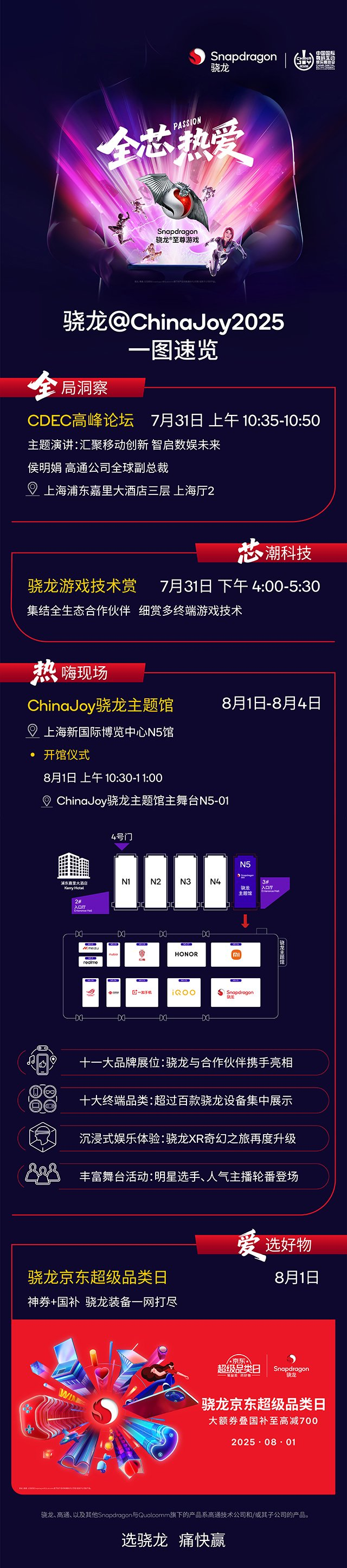 2025年 ChinaJoy(中国国际数码互动娱乐展览会)将于8月1日~8月4日在上海新国际博览中心盛大开启。高通作为移动通信领域的重要厂商,今年再度「包馆」,打造骁龙主题馆N5,为消费者带来一场汇聚娱乐体验与创新科技于一堂的娱乐盛宴。