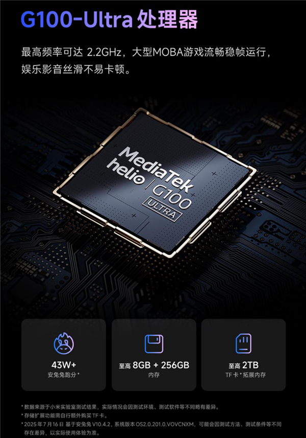 核心配置上,REDMI Pad 2搭载6nm联发科Helio G100 Ultra处理器,安兔兔跑分超43万,配备杜比全景声四扬声器,内置9000mAh电池,支持18W充电,前后摄像头均为800万像素。