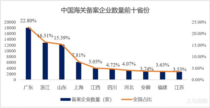 根据商务部数据,目前我国海关备案跨境电商主体已超12万家,主要集中在东部沿海,其中广东、浙江、山东三省排名前三占比超54.5%,深圳单城占比近12%,形成了东部集聚、中西部崛起的格局。2024年跨境电商主体分布情况如下图所示。