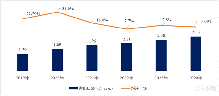 2019年-2024年中国跨境电商进出口额及增速
