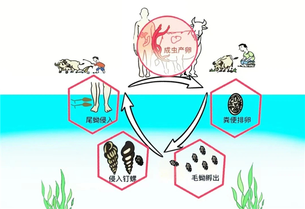 目前,我国仅流行日本血吸虫病,它是由日本血吸虫尾蚴感染、成虫寄生于人及多种哺乳动物的门脉—肠系膜静脉系统引起的一种寄生虫病。当汛期到来时,洪水等自然灾害可能会造成人或者家畜不可避免地接触含有日本血吸虫尾蚴的“疫水”,感染血吸虫而患病。