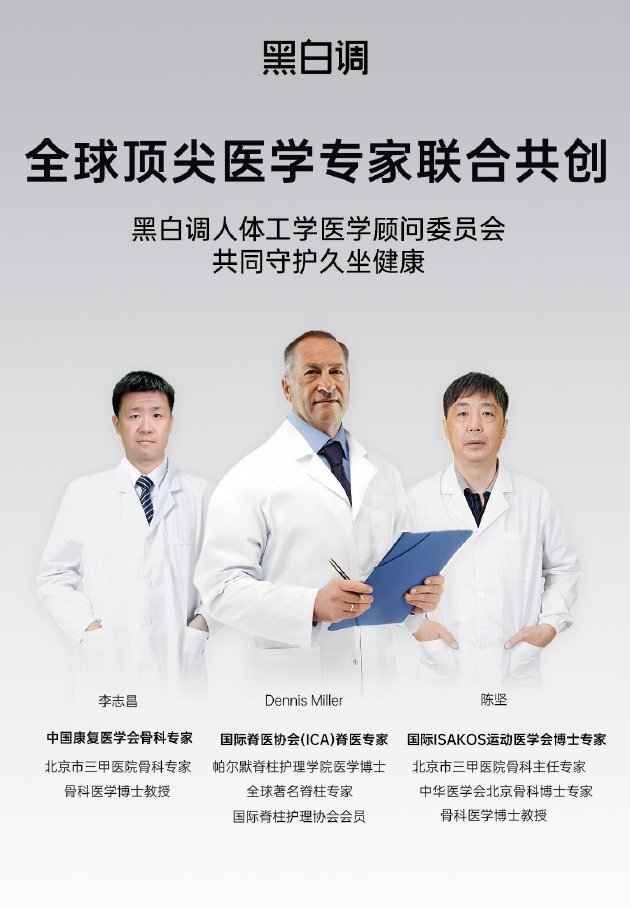 每一次技术创新,都在推动产品提升含金量。依托自建技术实验室,黑白调大量开展理论研究与产品验证。通过与国际脊医协会(ICA)脊医专家Dennis Miller、中国康复医学会骨科专家李志昌、国际ISAKOS运动医学会博士专家陈坚等全球顶尖医学专家开展合作,黑白调不断拓展科研“朋友圈”,实现强强联合,搭建人体工学基础研究与产品转化的桥梁。