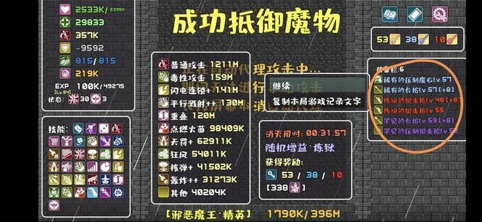 压制和武器升阶是核心环节,带上压制道具能提升武器等级,把无用的武器全部出售,集中资源升级攻击力超过4000的武器。永恒或奇迹类武器50级即可满足需求,罕见或传说品质的则建议升至58级左右。背包中尽量存放压缩道具,以加快自身升级速度,确保最终商店能刷出58级武器。两关的血量情况以及最后一区武器等级可参考相关图示。