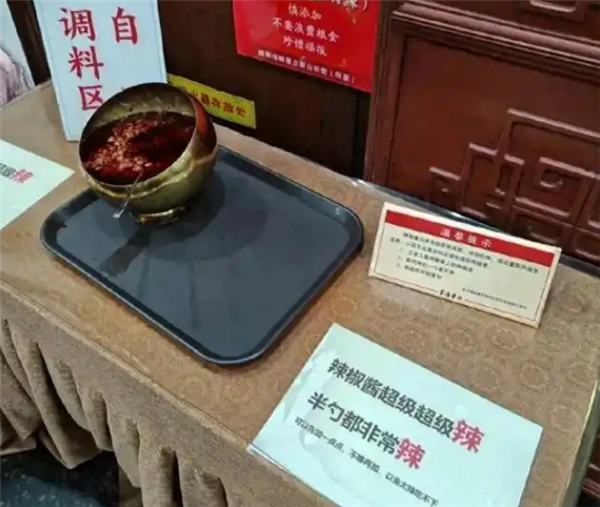 寺院还温馨提醒,辣椒酱为厨房自制、辣度极高,请适量取用避免浪费,并特意关照小朋友远离加料区以防溅入眼睛。此前,这款辣椒酱还曾在点餐台以瓶装形式限量售卖(售价9.9元)。