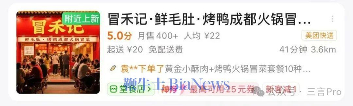 据三言此前报道,部分外卖商家利用AI生成虚假的门头照片和排队顾客图,将自身伪装成生意兴隆的网红店,实则多为“三无”小作坊。