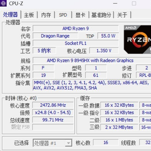 其次来看看AMD锐龙9 8945HX处理器的基本规格。