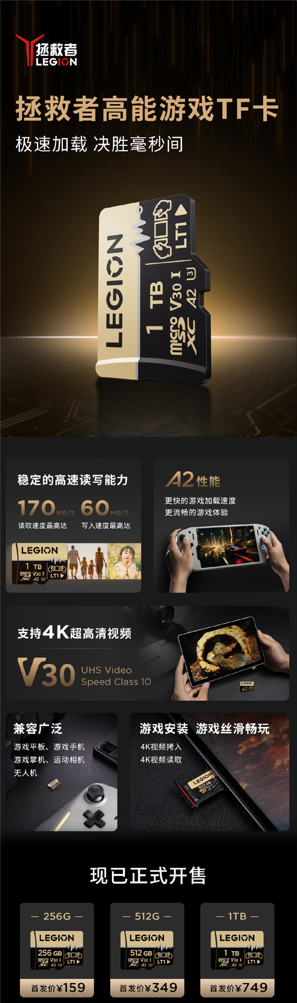 69元起!联想发布拯救者高能游戏TF卡/小新TF跳跳卡:最高读速170MB/s