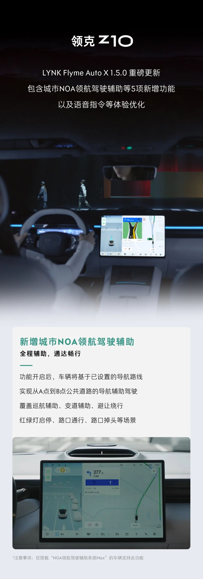 新增城市 NOA 领航驾驶辅助,领克 Z10 迎来 LYNK Flyme Auto X 1.5.0 更新