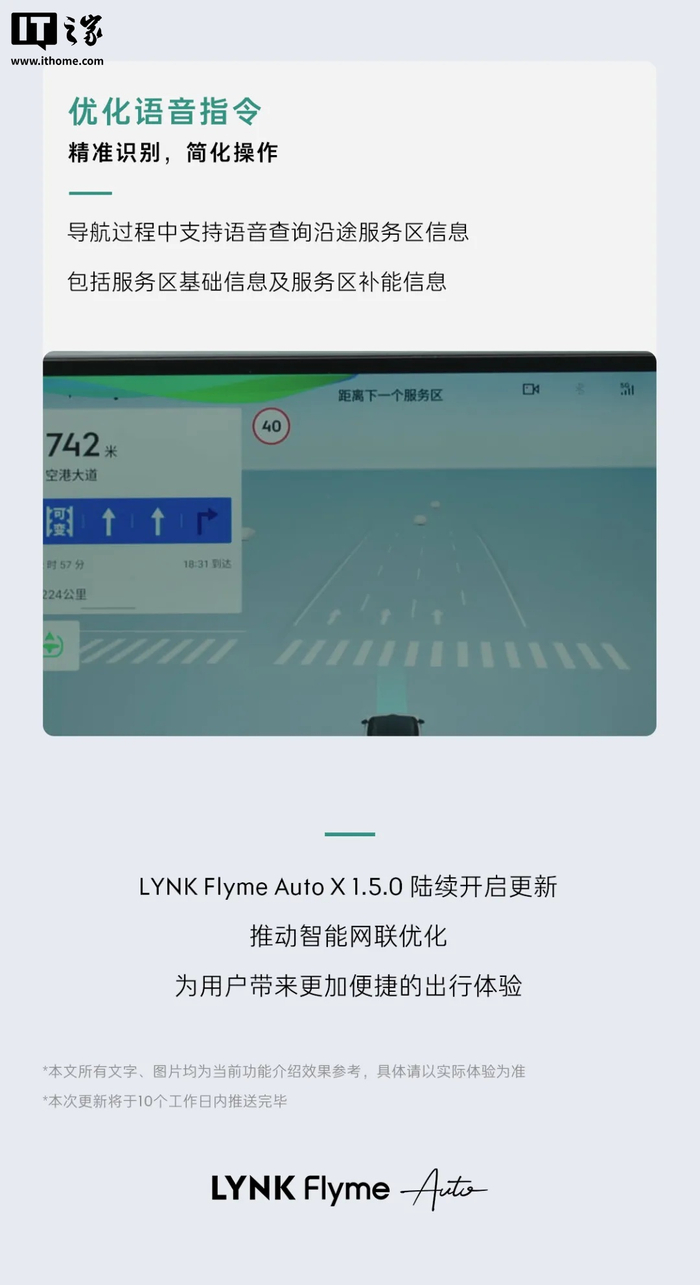 IT之家 8 月 7 日消息,领克 Z10 新版车机系统 LYNK Flyme Auto X 1.5.0 正式开启推送,推送内容包含城市 NOA 领航驾驶辅助等 5 项新增功能,同时对语音指令进行优化,以提高其识别能力与使用便利度。