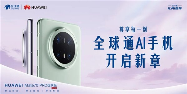 据介绍,首款全球通AI手机基于华为旗舰机型Mate 70 Pro打造,融合了多项前沿技术与专属权益,包括5G-A网络加速、高铁场景专有保障等极速网络体验。