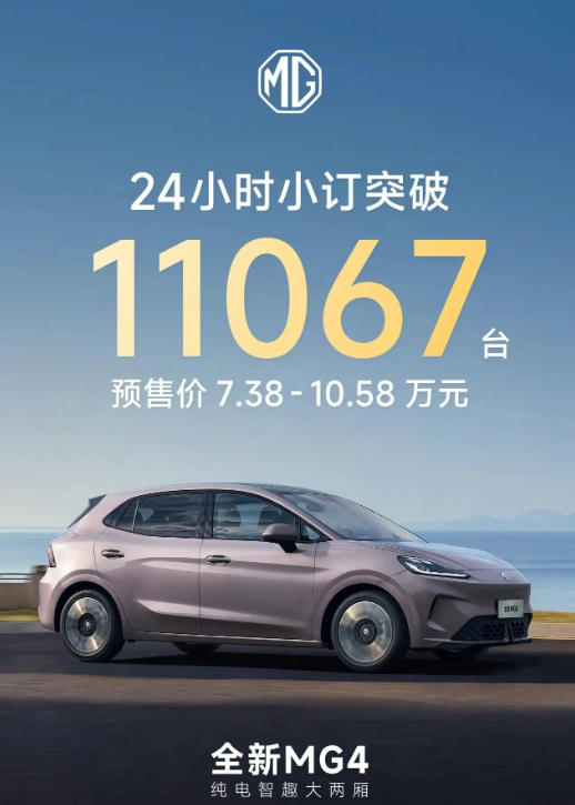 上汽名爵全新 MG4 车型 24 小时小订突破 11067 台:预售 7.38 万元起,OPPO 手车互联