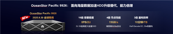 据悉,OceanStor Pacific 9926新品将于今年9月30日全球商用。