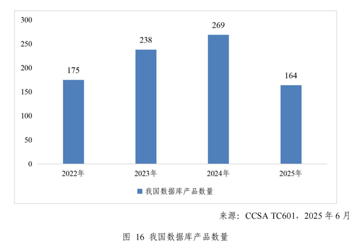国内数据库产品的数量,也开始高速收敛,从2024年的269款产品,直接腰斩到了164款。