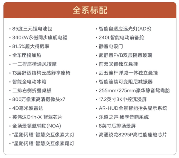 而动力系统上,Pro和Max均为后驱单电机,340kW最大功率,零百加速5.9秒,而Ultra为四驱版本,零百加速4.7秒,续航最高605km。