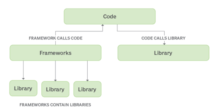 库提供灵活性和控制力,但在构建代码时需要更多的手动工作。另一方面,框架可以提供结构和更完整的解决方案,但可能会限制灵活性。框架可以包括库(图 1)。