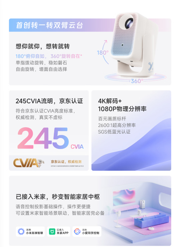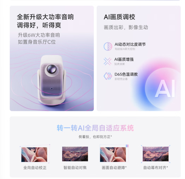 小明 Q6 Neo 投影仪开启预约:首创转一转双臂云台、245 CVIA 亮度,799 元