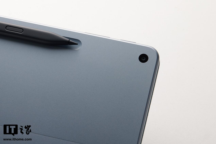 另外在背面右上角有一枚 1000 万像素 Ultra HD 后置摄像头,顶部中间则是手写笔的磁吸区域。
