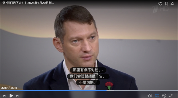 比如@阿纳托利·卡特科夫在节目中,谈及政府优待退伍军人的政策和现实落地差距问题的片段,被剪辑了——画面被粗暴引入广告,并进入下个环节。