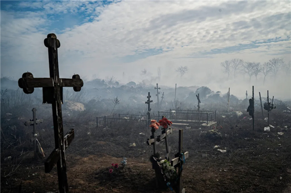 遭到炮击的乌克兰公墓