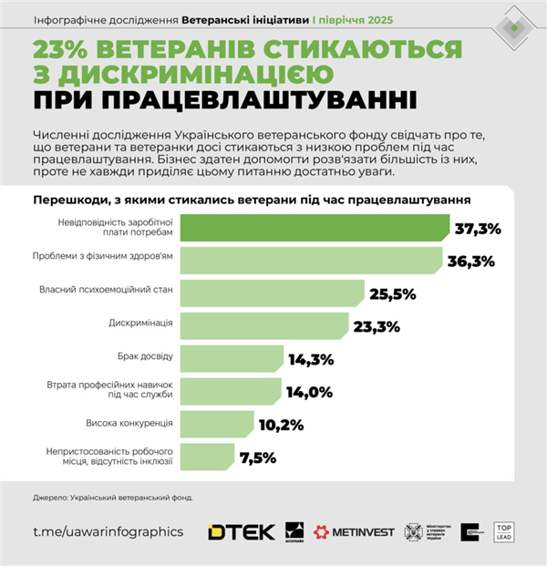 乌克兰退伍军人部、退伍军人基金会与robota.ua,在2025年5月公布了一份名为《退伍军人就业的障碍和适应性挑战》的报告,报告中提出: