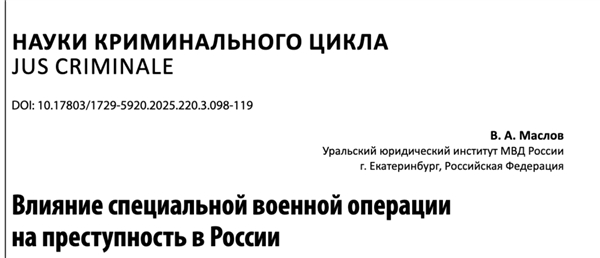 “乌克兰战争已经开始对俄罗斯的犯罪率产生影响,未来几年内,暴力犯罪数量可能还将持续上升。”