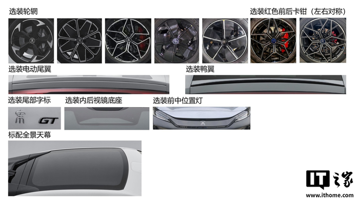 车身尺寸方面,宋 L GT 的长宽高分别为 4840 毫米、1950 毫米和 1560 毫米,轴距为 2930 毫米,与现款宋 L EV 保持一致。此外,该车型还将提供 19 英寸或 20 英寸多种造型轮辋,并配备红色制动卡钳,进一步提升车辆的外观质感和运动气息。